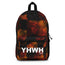 Our roomy and durable ''YHWH'' backpack is made from spun polyester and weights 1.3 lbs, just enough to be light, strong and long-lasting.